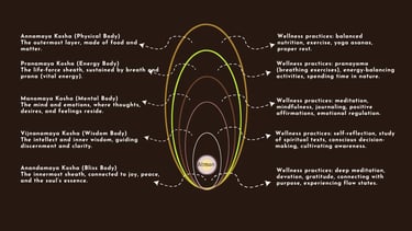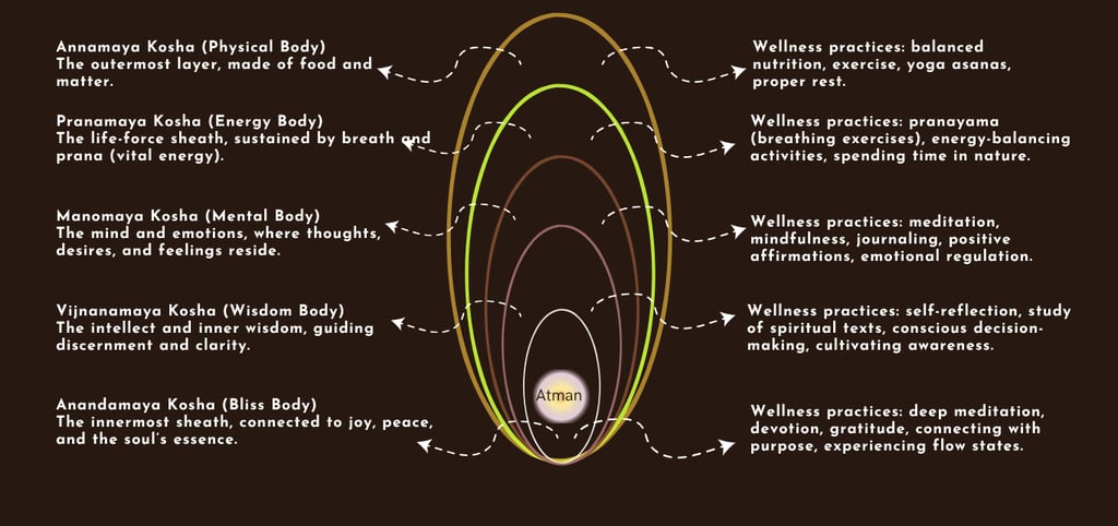 The Pañcakośa wellness philosophy comes from ancient Indian wisdom, particularly the Taittiriya Upanishad.